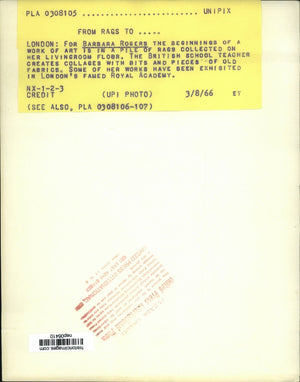 1966 Press Photo Barbara Rogers Making Collages from Rags, London, England