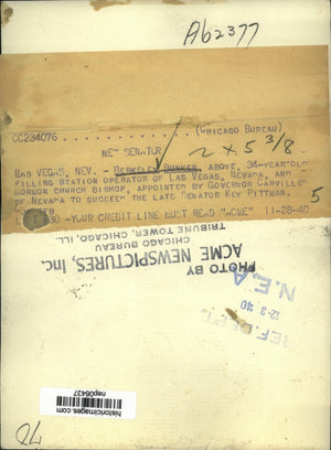 1940 Press Photo Berkeley Bunker, Nevada Senator - nep06437