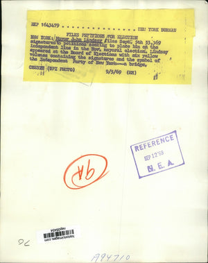 1969 Press Photo Mayor John Lindsay of New York Files Petitions for Election