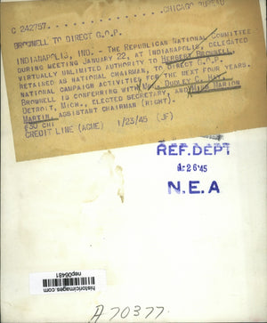 1945 Press Photo Herbert Brownell Kept GOP National Chairman in Indianapolis