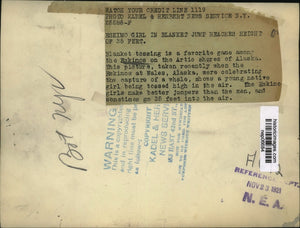 1921 Press Photo Blanket toss game of the Eskimos at Wales Alaska - nep06684