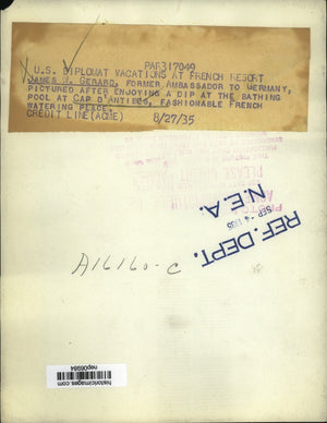 1935 Press Photo Ambassador James W. Gerard Swimming at Cap D'Antibes, France