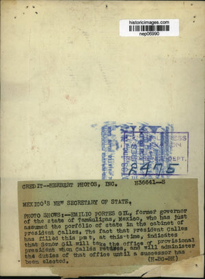 Press Photo Emilio Portes Cil, Mexican Secretary of State - nep06990