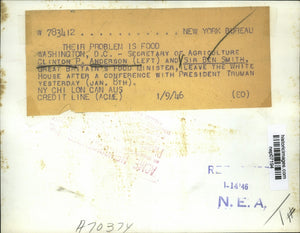 1946 Press Photo Clinton P. Anderson & Sir Ben Smith at White House - nep07194