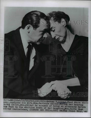 1955 Press Photo Herman R. Silver Comforts Wife Gertrude During Court Hearing