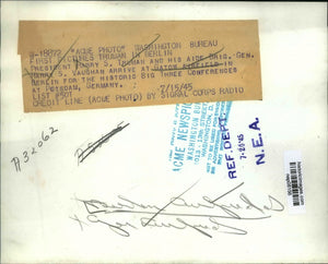 1945 Press Photo Pres Truman & Aide Brig Gen Harry Vaughan Arrive in Gatow