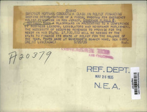 1935 Press Photo Gov Hoffman Illustrates Need for Aiding Needy in His State