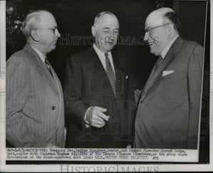 1953 Press Photo George Humphrey, Joseph Dodge Confer w/ Eugene Millikin
