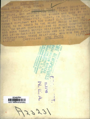 1945 Press Photo Cordell Hull Awarded Nobel Peace Prize for 1945 - nep08430