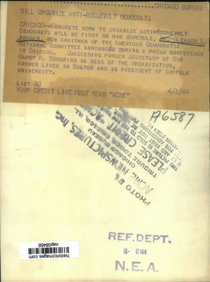 1944 Press Photo Mr. Gleason L Archer to Assemble Anti-Roosevelt Democrats