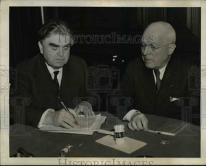 1941 Press Photo John L Lewis Signs Agreement with Hard Coal Operators