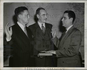 1947 Press Photo Stanley Woodward Administers Oath to John E Peurifoy
