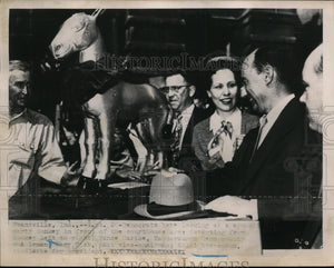 1952 Press Photo Adlai Stevenson & Constituents Observe Donkey Statue