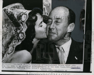 1956 Press Photo Miss Ortiz Kisses Adlai Stevenson on Cheek, Santa Fe, NM