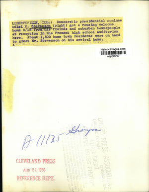 1956 Press Photo Adlai E Stevenson Welcomed Home in Libertyville, IL - nep08797