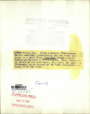 1956 Press Photo Adlai Stevenson & Family on Farm in Libertyville, Illinois