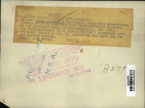 1933 Press Photo Senator Hiram Johnson of CA confered with President Roosevelt