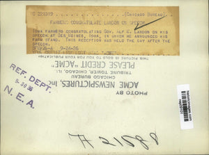 1936 Press Photo Governor Alf Landon Congratulated by Iowa Farmers on Speech