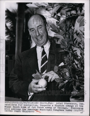 1955 Press Photo Adlai Stevenson at Col Jacob Arvey Home in Miami Beach, Florida