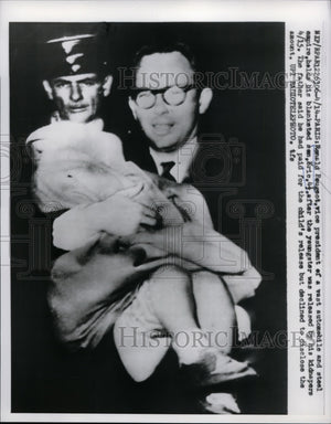 1960 Press Photo Ronald Peugeot Holds Kidnapped Son Eric After His Release