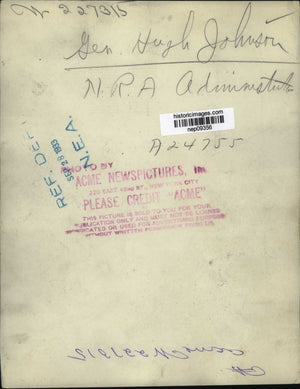 1933 Press Photo General Hugh Johnson, NRA Administrator - nep09356