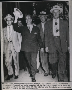 1952 Press Photo Illinois Governor Adlai Stevenson & bodyguards in Chicago