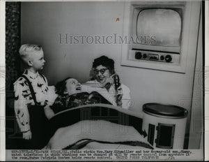 1953 Press Photo Mrs. Mary Kitsmiller, Son, & Nurse Patricia Hooten Watch RC TV