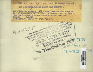 1933 Press Photo Gen Hugh S Johnson, NRA Chief, Addressing Hall of Science