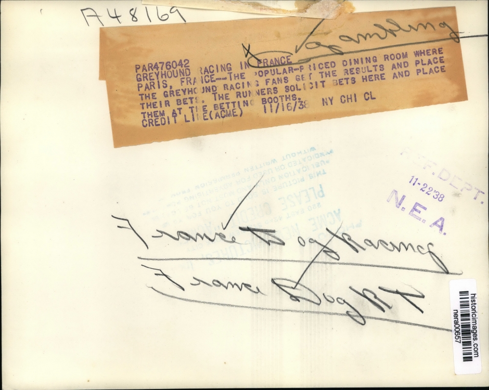 1938 Press Photo Paris Popular dining room where greyhound racing fans gather