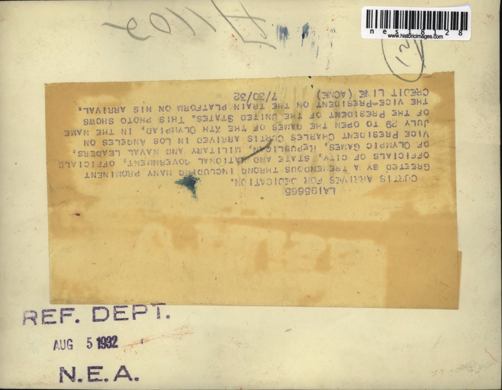1932 Press Photo US VP Charles Curtis arrives in LA, Calif for Olympiad