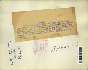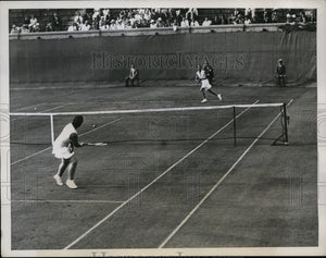 1934 Press Photo Betty Nuthall vs Baroness Maude Levi at Forest Hills tennis