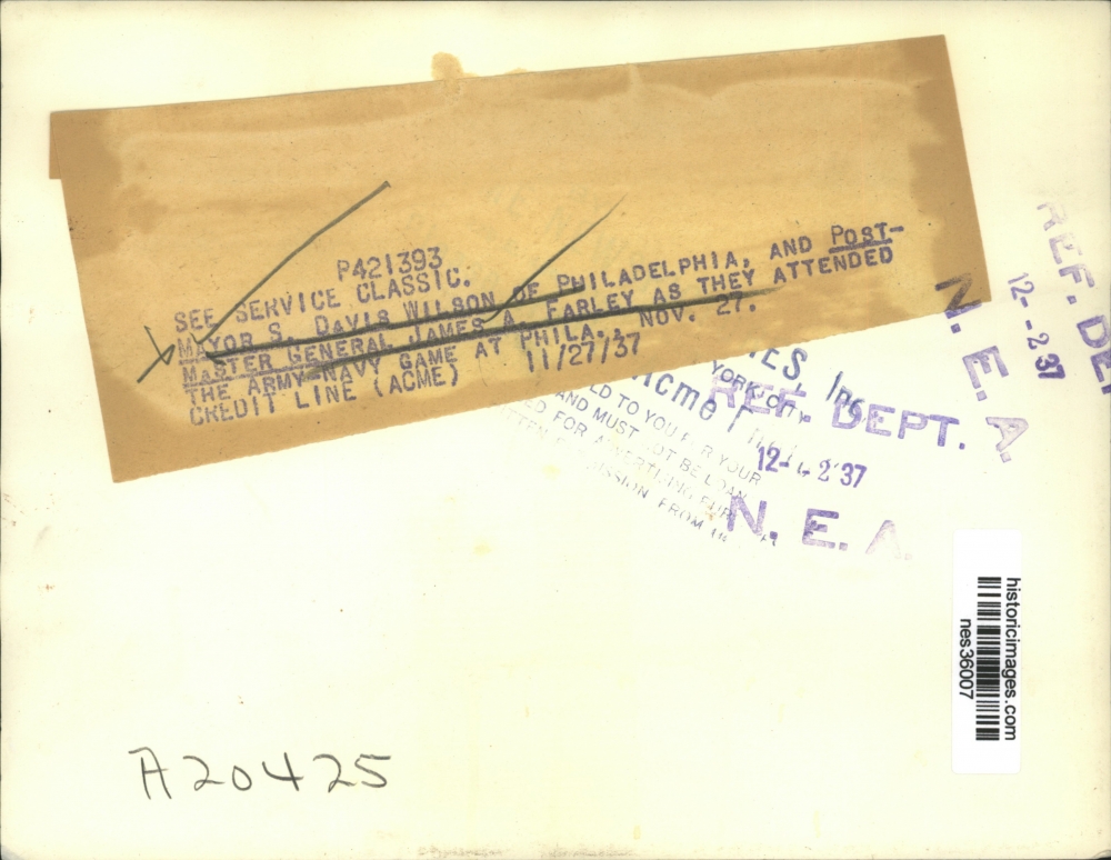 1937 Press Photo Philadelphia Mayor SD Wilsonm Postmaster General JA Farley