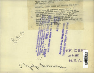 1932 Press Photo Y Tsuruta 200 meter breaststroke for LA Olympic games