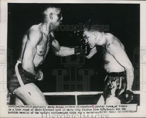 1953 Press Photo Randy Turpin batters Charles Humez at boxing in London