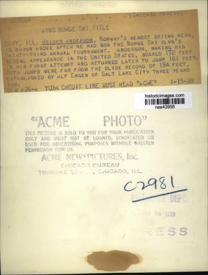 1939 Press Photo Reider Anderrson Norway skier at Cary Illinois Norge Ski club