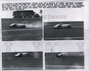 1957 Press Photo Jimmy Daywalt race car spins out at Indianapolis Indiana