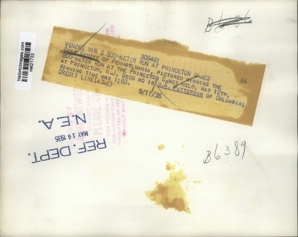 1935 Press Photo Gene Venzke Won the 800-Meter Run At Princeton - net21733