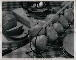 1955 Press Photo Bartlett Pears, Cheese, Pumpernickel Bread - nex02065