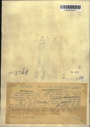 Credit - ACME and NEA In St. Louis Missouri, Mrs Gladys Dennison said of the Christmas Eve tragedy, "We were going to have such a lovely Christmas -- I can't figure out why he did it." Her husband Benhamin F. Dennison killed his two daughters by a former marriage and then ended his own life. Shown are the young victims, Leanna Marie, 8 (left), and Loretta May, 6.