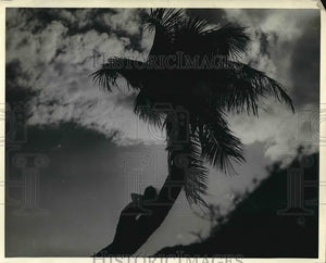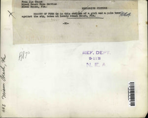 1936 Press Photo Girl Leaning on Palm Tree Miami Beach