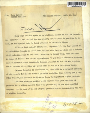 1945 Press Photo Civilian travelers boarding happily