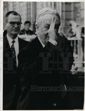 1971 Press Photo David K E Bruce waves as arrives for Paris Peace Talk
