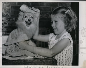 1955 Press Photo Cooling a hot dog with a damp towel and wet brush.