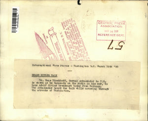 1938 Press Photo Dr Hans Dicckhoff German Ambassador To US Listens To Fuhrer Tal
