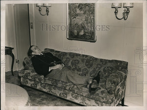 1937 Press Photo Dave McLane a camerman on a sofa aboard a ship