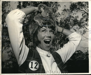 1969 Press Photo American Airlines Hostess Has Cute Koala On Her Head In Brisban