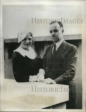 1933 Press Photo Leon Gilbert Simon poses with bride, Fannette Brigand