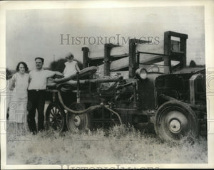 1932 Press Photo Ja Smith & wife & suction dredge for mining