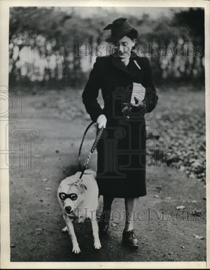 1938 Press Photo Geneva Switzerland Whitey the dog & his mistress on a walk