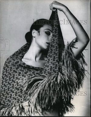 1965 Press Photo Fashion Model Wearing Manolo Borromeo Thistledown Silk Stole